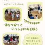 2025/09/18 / 最終更新日時 : 2025/10/01 野菊野こども館スタッフ お知らせ 10月の「おやこDEたいむ」 10月の「おやこDEたいむ」は「おはなしひつじぐも」の田澤さんがパネルシアターやふれあい遊びをします。 みなさん、遊びに来てくださいね♪ 日にち:10月1日㈬ 時間 :10:30~ (おはなし会は10時45分頃から) ◇ […]