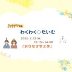 2026/01/25 / 最終更新日時 : 2026/01/25 野菊野こども館スタッフ お知らせ 2月わくわく◇たいむ「おひなさま工作」のおしらせ (2026.2.12(木)) 2月「わくわく◇たいむ」のおしらせ おやこDE広場 野菊野こども館では、おおむね2歳以上の親子さんを対象に毎月1回「わくわく◇たいむ」を開催しています。 音楽に合わせて身体を動かす遊びや、絵本の読み聞かせ、季節の行事を大 […]
