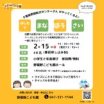 2026/01/30 / 最終更新日時 : 2026/01/30 野菊野こども館スタッフ お知らせ 2月のぎっこひろば 「みんなでまなぼうさい」のお知らせ 2月の「のぎっこひろば」は「みんなでまなぼうさい」です。 野菊野こども館に、千葉県西部防災センターのひとが来てくれるよ。 日時:2/15(日) 13:30〜15:00(受付13:15〜) ⭐場所:野菊野こど […]