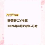 2026/03/25 / 最終更新日時 : 2026/03/25 野菊野こども館スタッフ お知らせ 野菊野こども館2026年4月のおしらせ 4月は入学・入園・進級の季節ですね。桜の花が咲いているのを見かけるようになり、春を感じるようになってきました。野菊野こども館では子どもたちや親子のみなさんが、遊んだりのんびりしたりと、それぞれ楽しい時間を過ごしていますよ […]