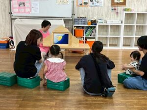 9月の「絵本のじかん」は、ボボンバ ボンボンの楽しいリズム🎵や中秋の名月にちなんでお団子の手遊び、お月さまの紙芝居や歌を