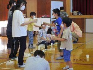 子どもたち全員が「シュー」と言う掛け声と共に上手に飛ばすことができました 。