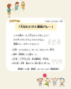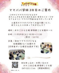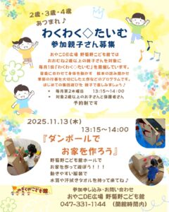 ・野菊野こども館は、2025年4月から「地域子育て相談機関」となりました。新たに乳幼児親子さんの登録をお願いいたします。