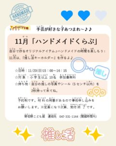 11/8(土)10:00~15:00(13:00~小学生以上も参加できます。)