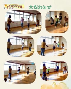 大なわとびは久しぶりに跳んだという子も多く、跳ぶタイミングを思い出しながら練習して、最後には全員で「8の字とび」をクリアすることが出来ました☺