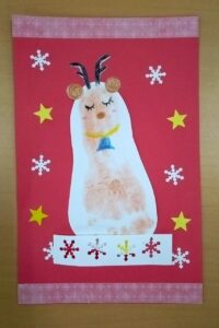 お子さんのかわいい手形足形でクリスマスの飾りができました。