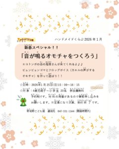 1/10(土)10:00~15:00(13:00~小学生以上も参加できます。)