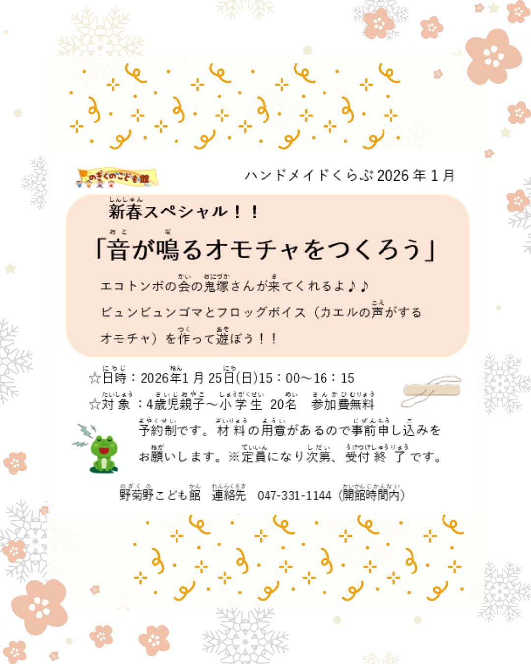 1/24(土)10:00~15:00(13:00~小学生以上も参加できます。)