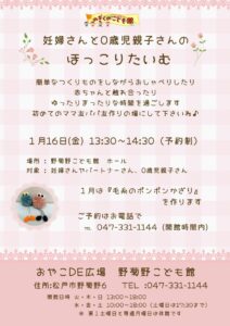 1/16 (金)13:30~14:30(予約制。事前の申し込みをお願いします。)