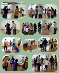 最後は「あんたがたどこさ」。みんなで輪になり手をつないで歌いながら、右へ左へ回って大盛り上がり♪