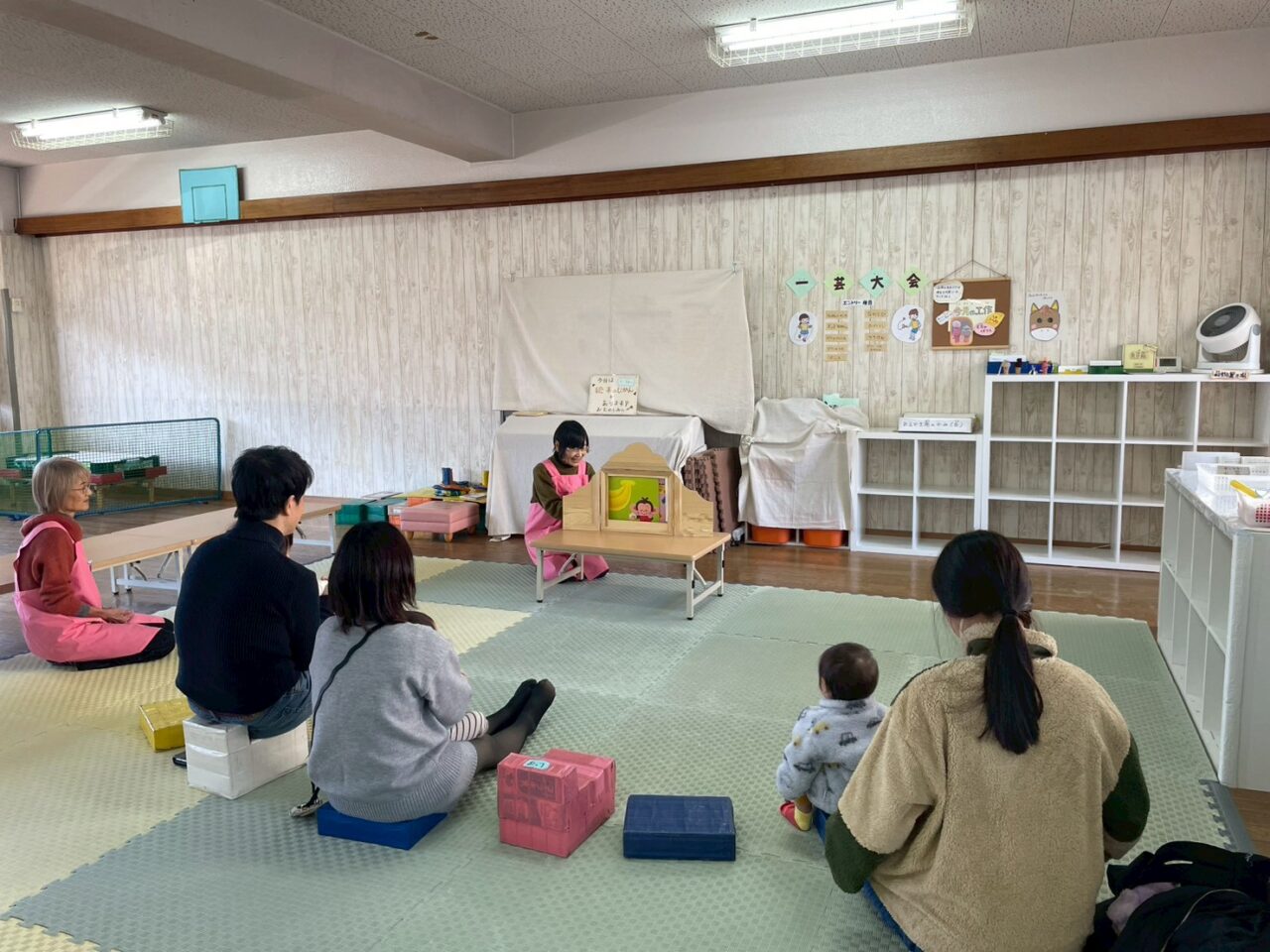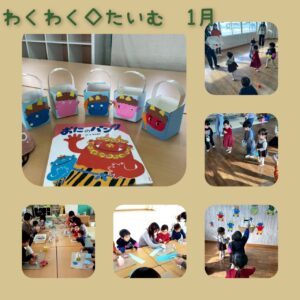 1月の「絵本のじかん」は初めての小さなお友達に、優しく語りかけながらの手遊びで始まりました。