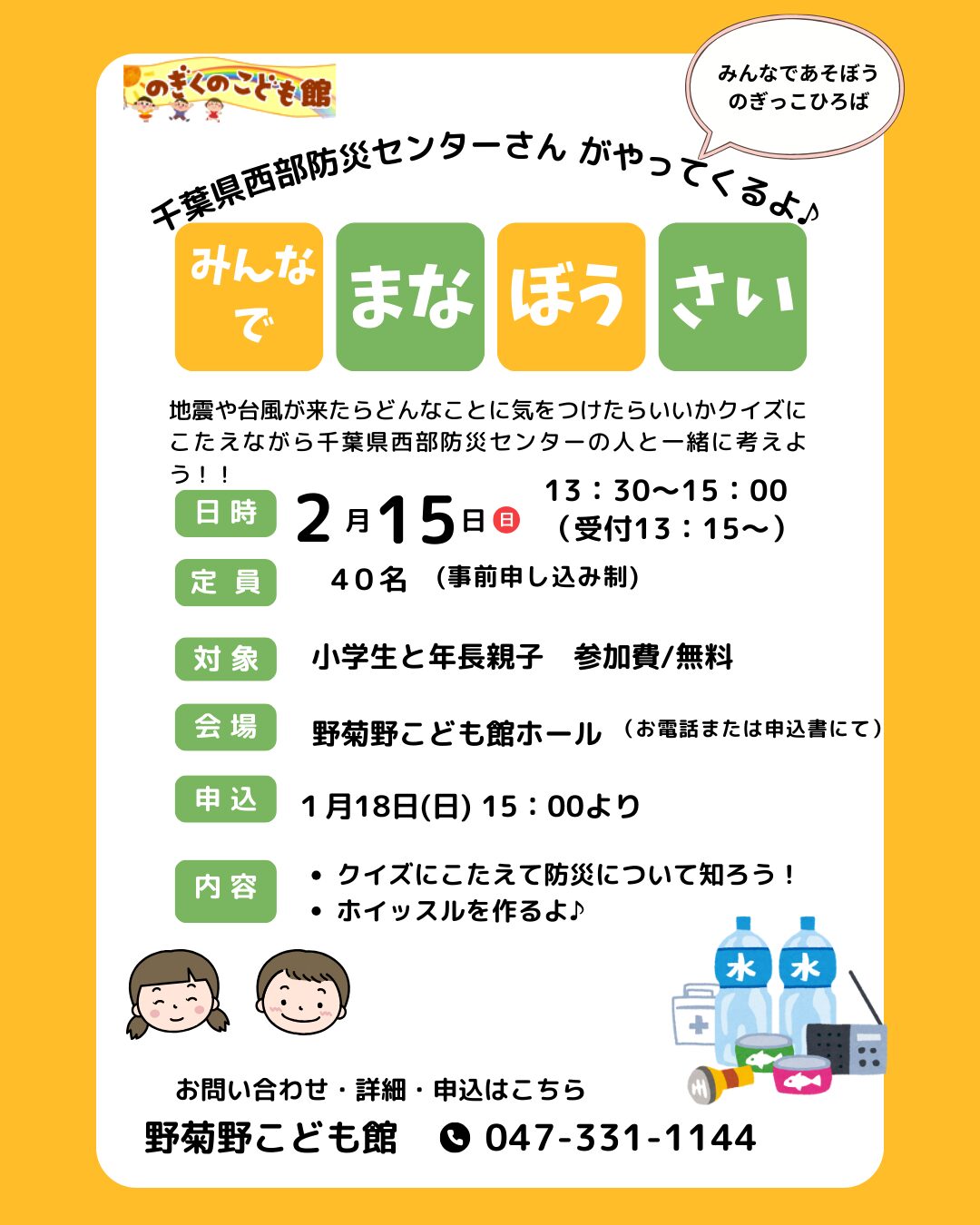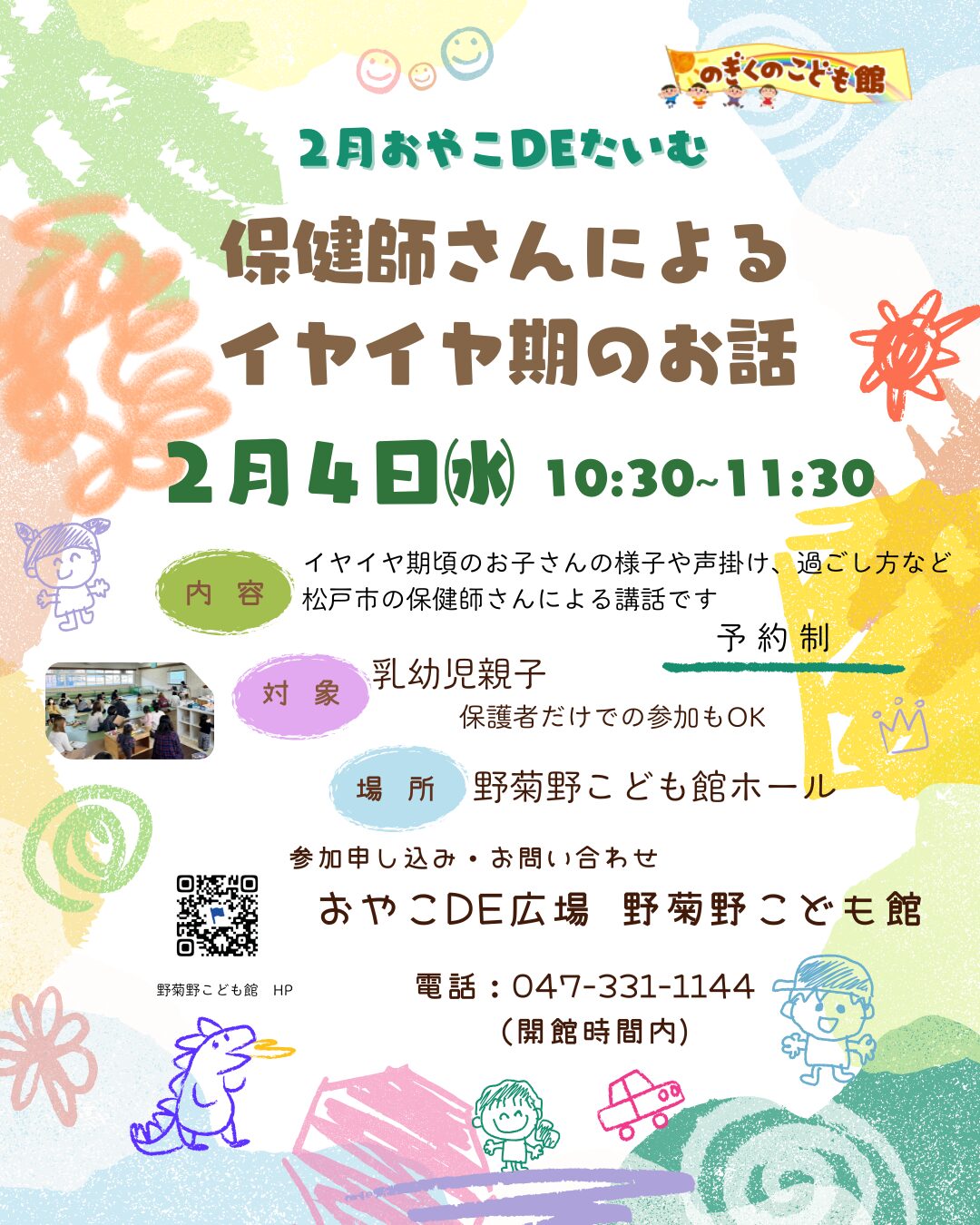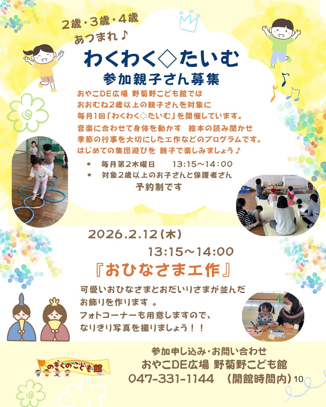 参加申し込み・お問い合わせは、野菊野こども館へお願いします。