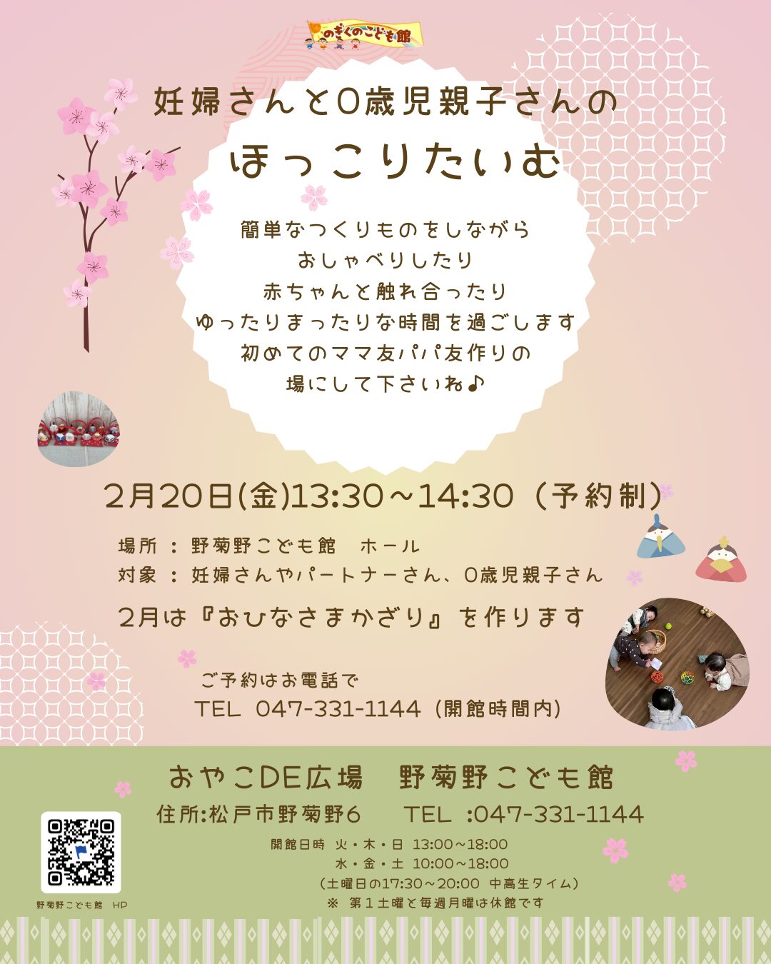 ・野菊野こども館は、2025年4月から「地域子育て相談機関」となりました。新たに乳幼児親子さんの登録をお願いいたします。