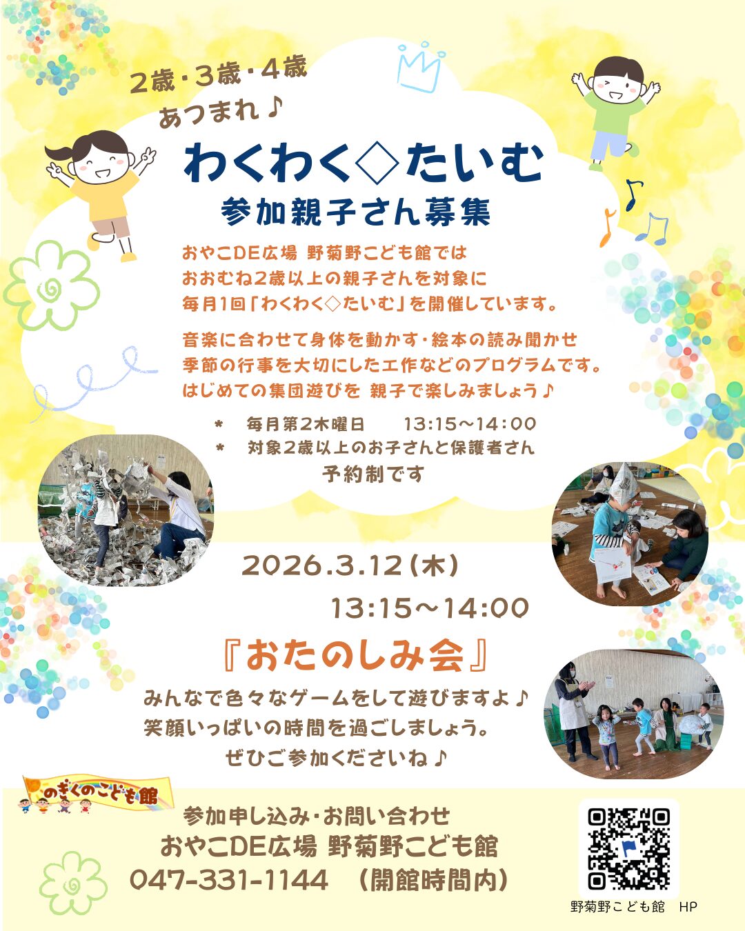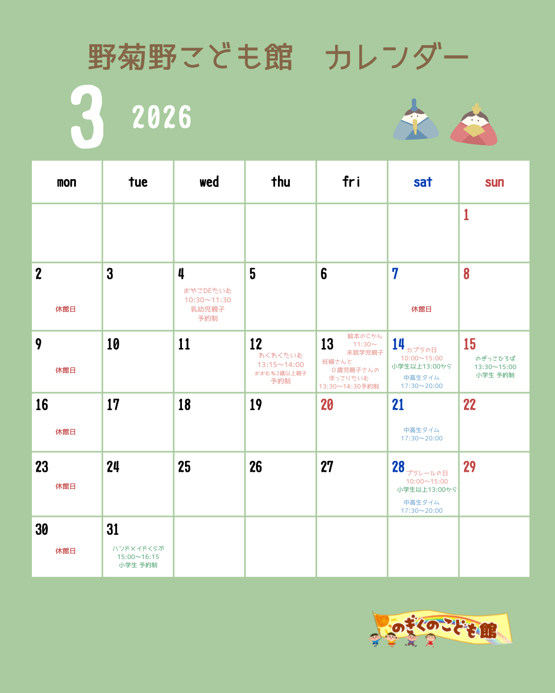 2026年3月も野菊野こども館にあそびにきてください♪