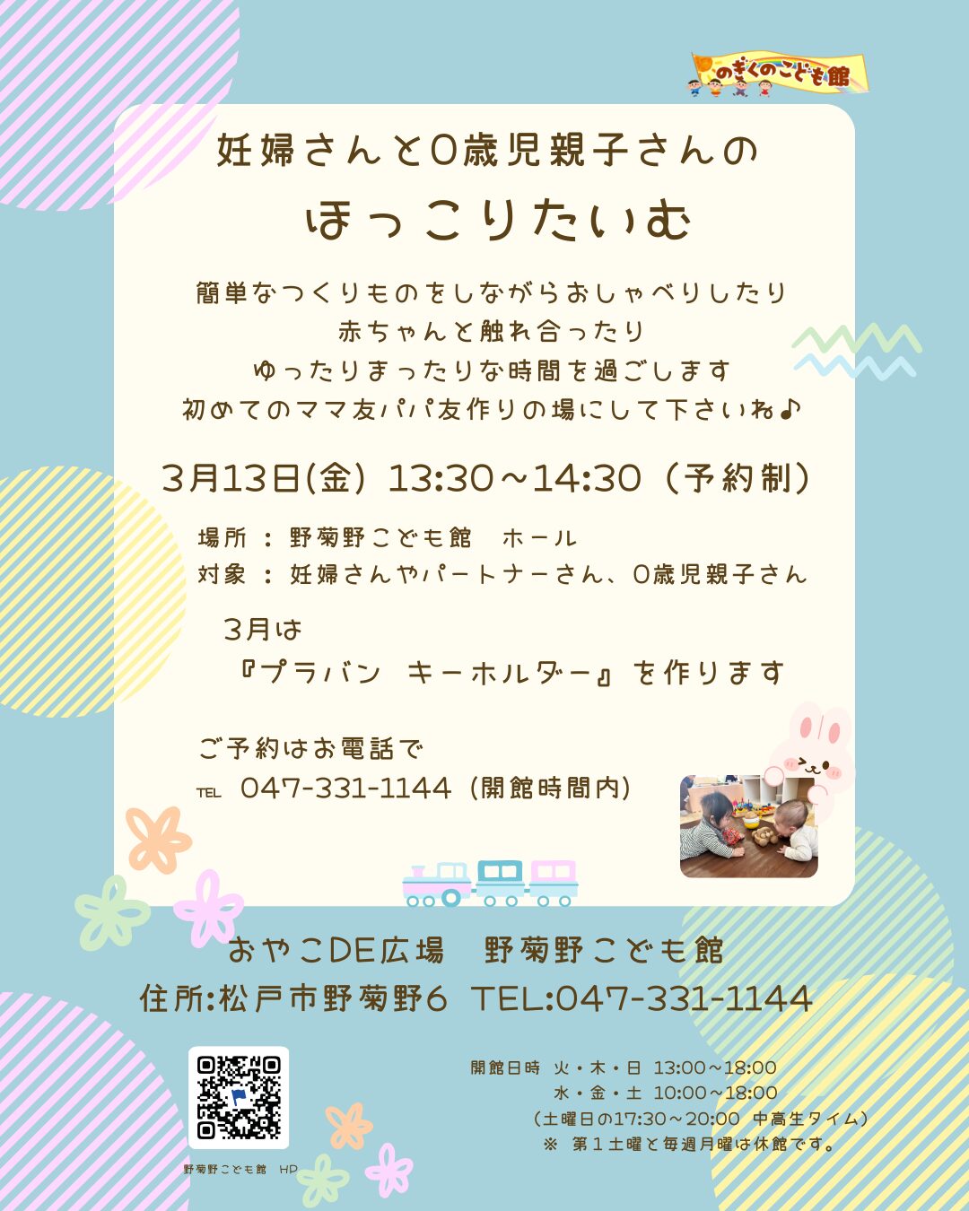 ・野菊野こども館は、2025年4月から「地域子育て相談機関」となりました。新たに乳幼児親子さんの登録をお願いいたします。