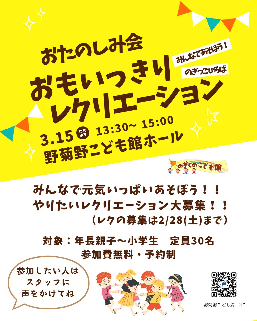 ☆レクリエーションの募集は2/28(土)まで受付中☆