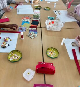 ママ達はおひなさま作りです。