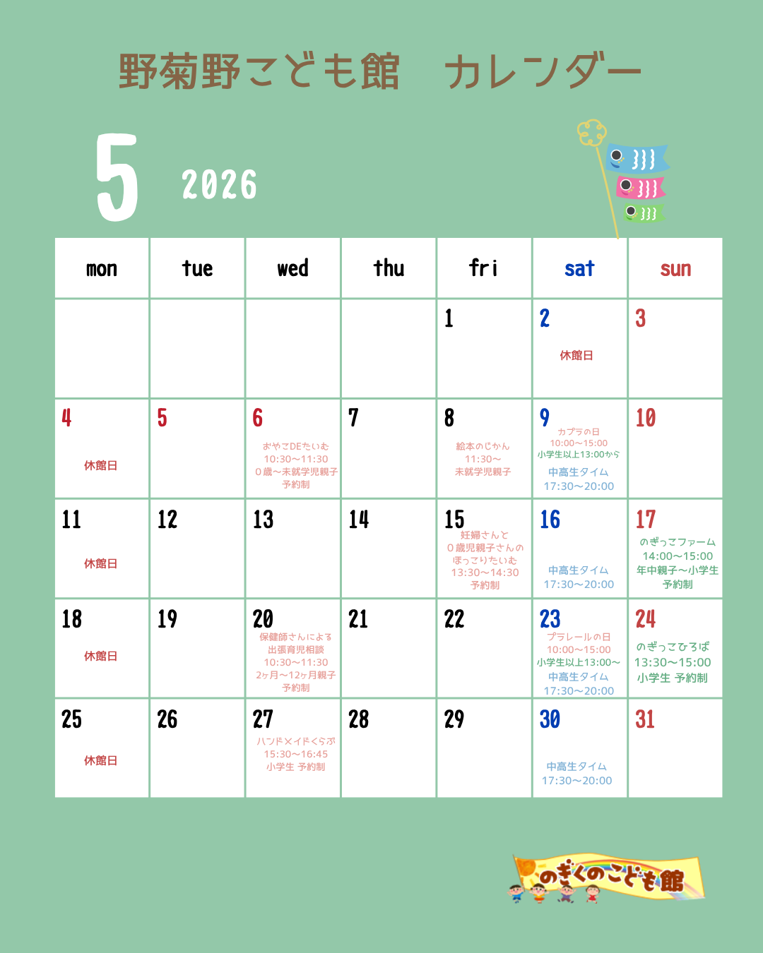 2026年5月も野菊野こども館にあそびにきてください♪