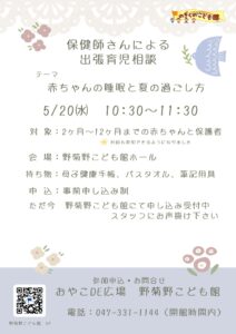 5/20 (土)10:30~11:30(予約制。事前の申し込みをお願いします。)